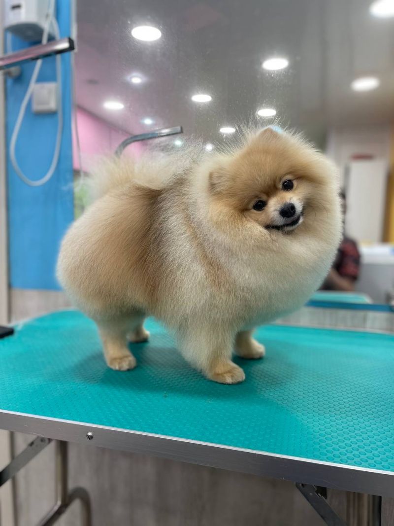 Na początku hodowca przycina psu pazury, myje go i suszy suszarką, przyzwyczajając do zabiegów. Do groomera należy udać się po podaniu wszystkich obowiązkowych szczepień, 14 dni po ostatniej szczepionce, w wieku czterech miesięcy.